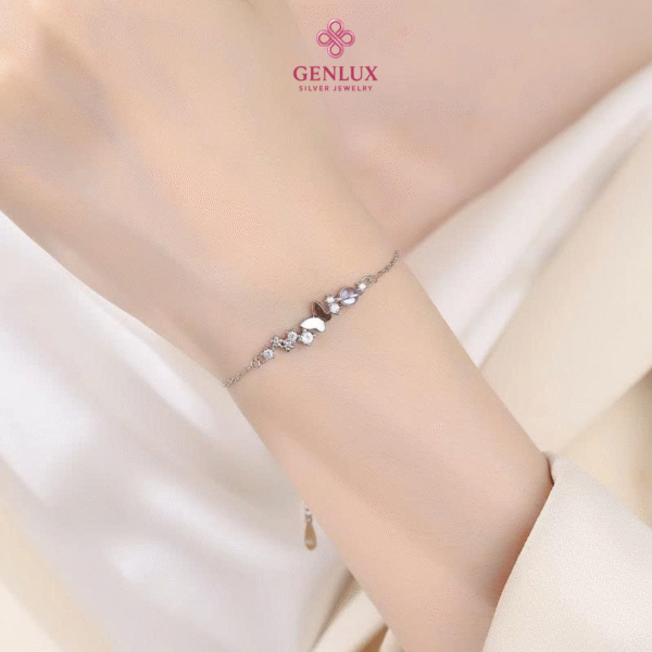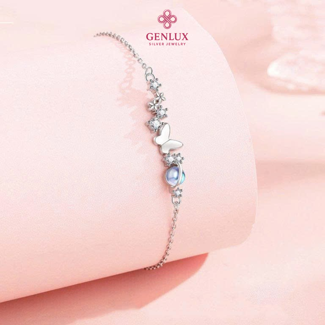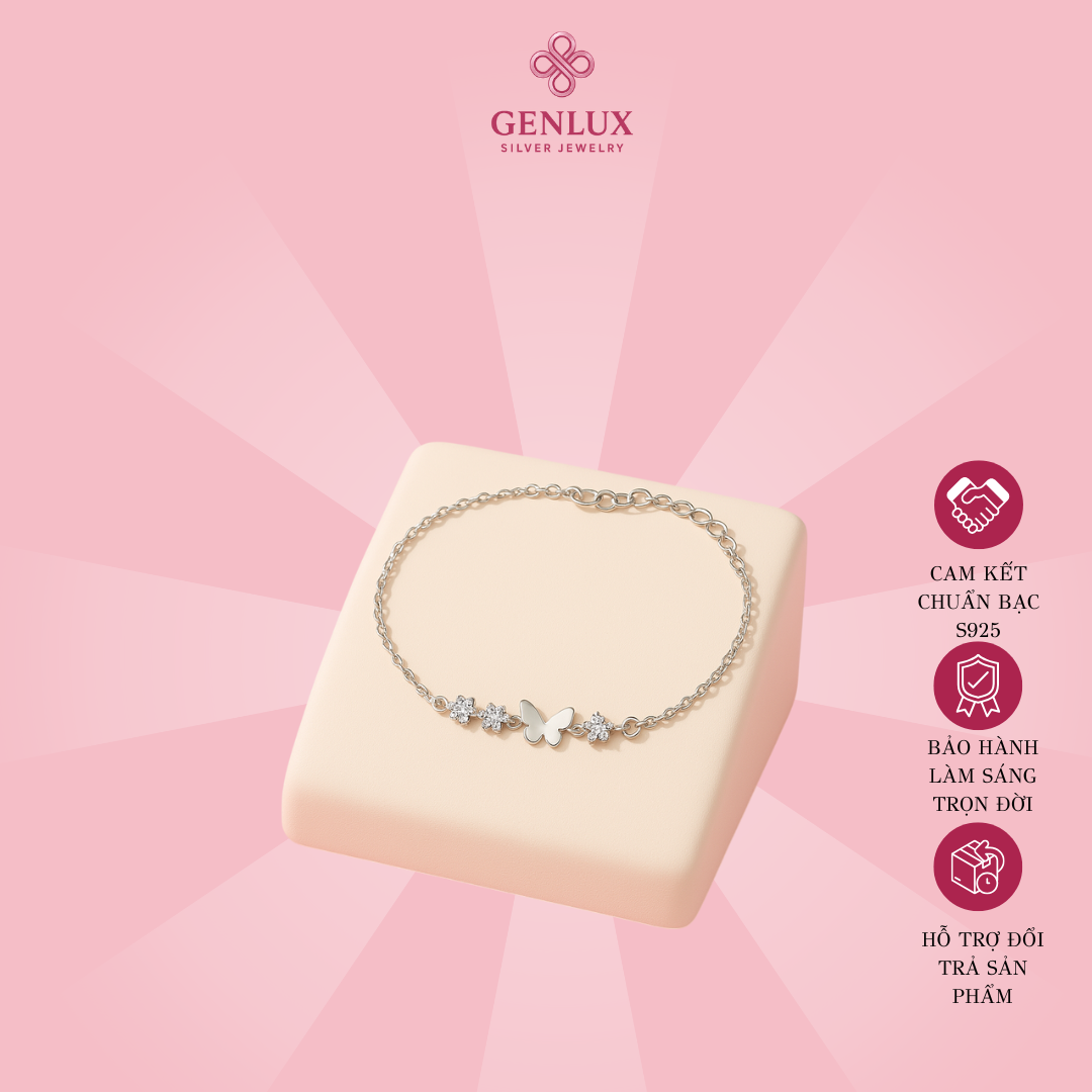 Lắc tay bạc S925 charm bướm đính đá CZ của GenLux Jewelry là món trang sức hoàn hảo dành cho những cô gái yêu thích vẻ đẹp nhẹ nhàng, thanh lịch và đầy nữ tính. Với thiết kế độc đáo, chiếc lắc tay này không chỉ làm nổi bật vẻ đẹp của người đeo mà còn mang lại thông điệp sâu sắc về sự thay đổi và khát khao tự do.